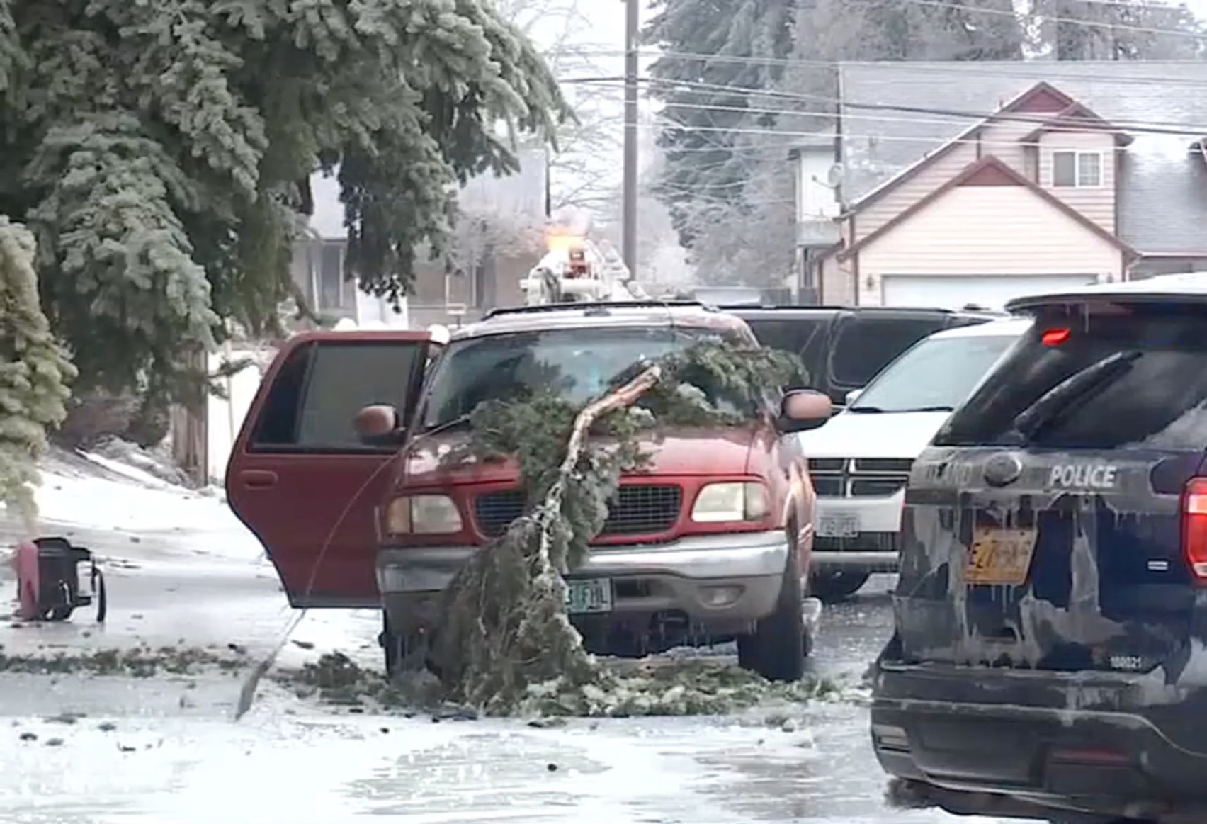 Cụ thể, một cành cây bị gãy và rơi vào đường dây điện khiến nó rơi xuống một chiếc Ford Expedition khiến chiếc xe bị nhiễm điện.