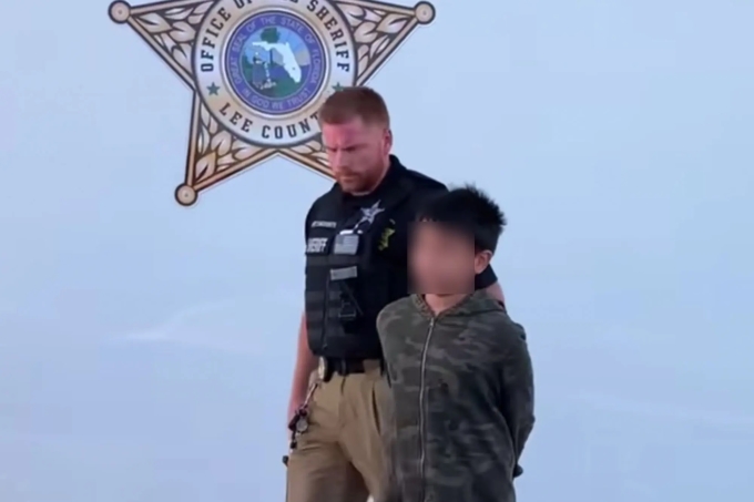 Văn phòng cảnh sát trưởng chia sẻ thông tin về vụ việc trên một bài đăng trên mạng xã hội, kèm theo một đoạn video dài 22 giây cho thấy cậu bé 10 tuổi bị còng tay sau lưng và được dẫn giải tới một chiếc xe của cảnh sát.