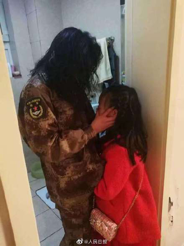 Một nữ bác sĩ khác đang chia tay cô con gái nhỏ, cô bé đã khóc vì không được đón giao thừa bên mẹ