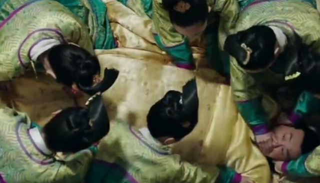 Lúc này, hoàng hậu nhân danh hoàng đế ra lệnh bắt khẩn cấp 16 cung nữ cả gan phạm tội tày đình. Sau khi bị tra tấn dã man, tất cả các cung nữ đã cúi đầu nhận tội. Hoàng hậu xuống tay không không chút may mảy thương tiếc: Xử tử 16 cung nữ (trừ Trương Kim Thúy). Tất cả người thân của 16 cung nữ cũng bị cho vào nhà giam, tài sản bị tịch thu tất thảy.