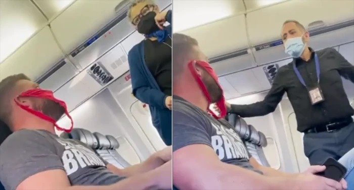 Trong đoạn video lan truyền trên mạng xã hội, nam hành khách Adam Jenne bị các tiếp viên yêu cầu xuống máy bay do đeo "chiếc khẩu trang" gây tranh cãi.