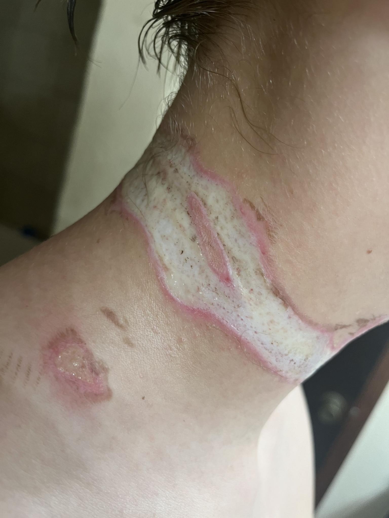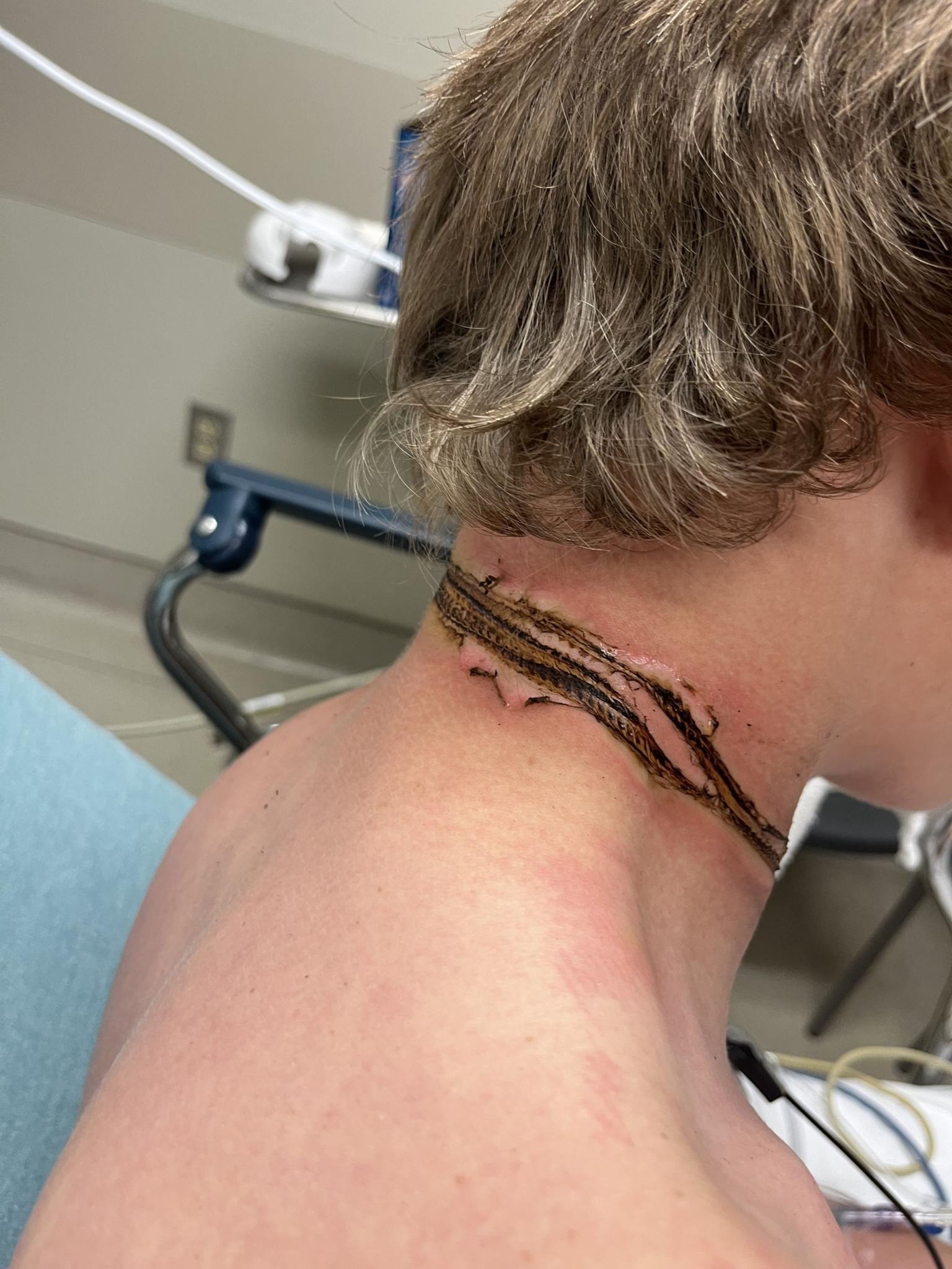 Lúc này, người mẹ mới nhận ra vết cháy xém sâu quanh cổ con trai. Vết bỏng nặng đến nỗi hậu quả để lại trên cổ đứa trẻ trông không khác gì một chiếc vòng cổ khác giống hệt món đồ trang sức mà trước đó đã đeo. Chị Davis cũng nhanh chóng nhận ra cả ngôi nhà có mùi khét lẹt của tóc và da cháy nên vội vã gọi cấp cứu. Trong khi chờ các nhân viên y tế đến nơi, Ogdahl đã kể lại toàn bộ sự việc đã xảy ra với cậu.