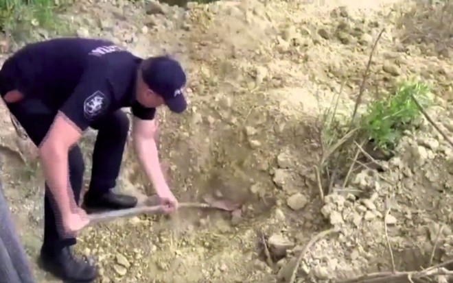 Tuy nhiên, trong quá trình khám xét ngôi nhà và các khu vực lân cận, cảnh sát đã bất ngờ nghe thấy tiếng động lạ giống như tiếng khóc dưới đất. Thấy khả nghi, họ lập tức tiếng hành đào đất tại khu vực này và bất ngờ khi tìm thấy một người đàn ông 62 tuổi bị nhốt trong một chiếc "quan tài tạm bợ" được chôn sâu dưới đất.