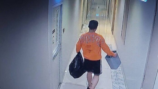 Sau khi khoanh vùng đối tượng, cảnh sát đã quyết định lần theo hướng lên trên, cuối cùng nhắm vào nam cư dân sống ở căn hộ ở tầng 12, cách nhà nạn nhân 2 tầng. Mặc dù cảnh sát không tìm thấy dụng cụ gây án tại nhà nghi phạm nhưng camera giám sát hành lang tầng 12 đã ghi lại rõ nét cảnh nghi phạm mặc áo màu cam bước ra khỏi căn hộ của mình với một bọc rác sau khi gây án vào lúc khoảng 12h đêm.