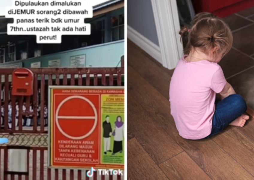 Trước đợt nắng nóng đang diễn ra trên khắp Malaysia, Bộ Y tế (MOH) đã đề nghị các trường học thận trọng với những tiết thực hành. Tuy nhiên, giáo viên này vẫn yêu cầu học sinh thực hiện hình phạt, trong khi mình núp trong bóng râm.