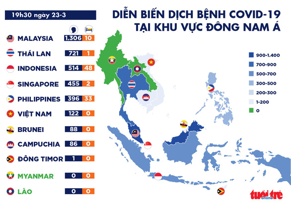 Bộ Y tế Singapore ngày 23-3 thông báo đã phát hiện thêm 54 ca nhiễm virus corona mới tại nước này, trong đó có tới 38 ca là người vừa nhập cảnh, chiếm gần 90% số ca nhiễm mới của ngày. Đây là mức tăng cao nhất từ trước tới nay tại Singapore, theo tờ Straits Times.