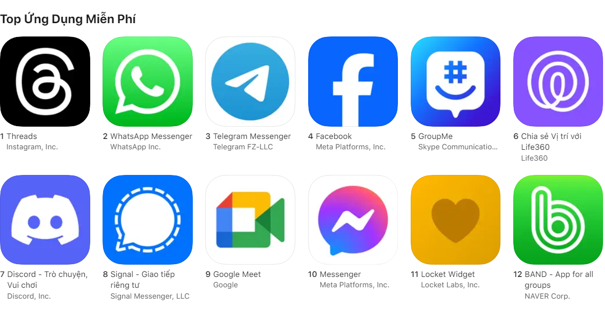 Cụ thể, lượt tải Telegram tăng vọt lên vị trí thứ 3 trên bảng xếp hạng mạng xã hội của App Store ở Mỹ. Trên toàn cầu, báo cáo của công ty nghiên cứu thị trường Sensor Tower cho thấy lượt tải Telegram đối với thiết bị iOS tăng trung bình 4%/ngày kể từ cuối tuần trước.