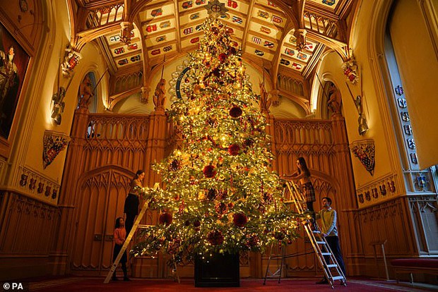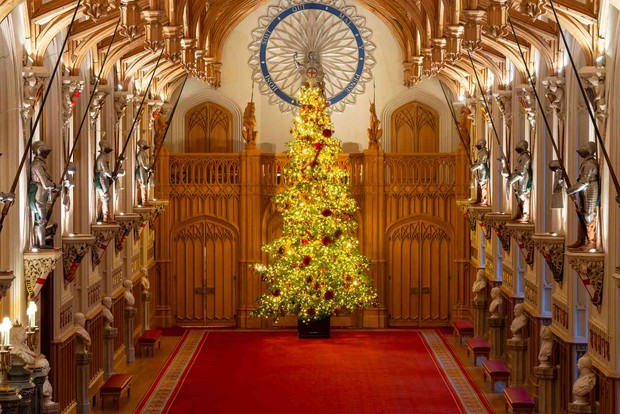 Theo như những hình ảnh được đăng tải, Dinh thự hoàng gia nằm tại Berkshire, Anh đã được thay đổi diện mạo với cây thông Giáng sinh cao hơn 6 mét nằm trong sảnh St.George. Được biết, cây thông Noel này được trồng trong Công viên Windsor và luôn là điểm nhấn của lâu đài Winsord vào dịp lễ này.