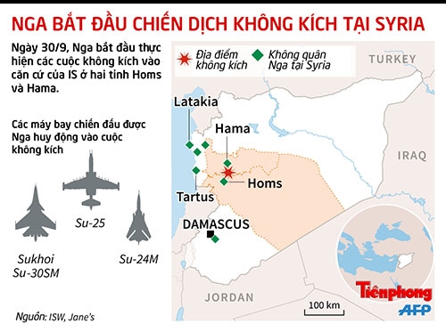 Phát biểu trong một phiên họp với các thành viên nội các, Tổng thống Nga Vladimir Putin ngày 30/9 thông báo Không quân nước này đã bắt đầu chiến dịch không kích các mục tiêu của nhóm Nhà nước Hồi giáo tự xưng (IS) tại Syria. Các cuộc không kích đầu tiên nhằm vào căn cứ của IS ở hai tỉnh Homs và Hama.