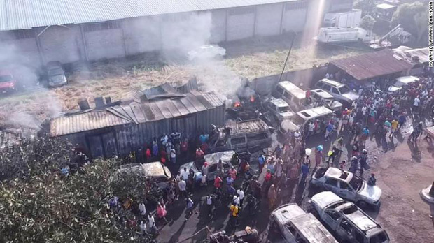 Một trang tin địa phương cho biết có một chiếc xe bus chở kín người đã bị thiêu cháy hoàn toàn, trong khi các cửa hàng và khu chợ gần đó cũng bị ngọn lửa chạm tới.