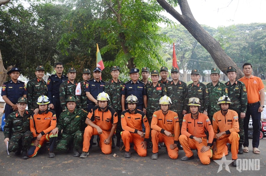 Thiếu tướng U Myat Thu, Cục trưởng Cục Cứu hỏa, cứu hộ, cứu nạn (Bộ Nội vụ Myanmar) bày tỏ cảm ơn sâu sắc trước tình cảm, sự hỗ trợ kịp thời, quý giá của đoàn QĐND Việt Nam.
