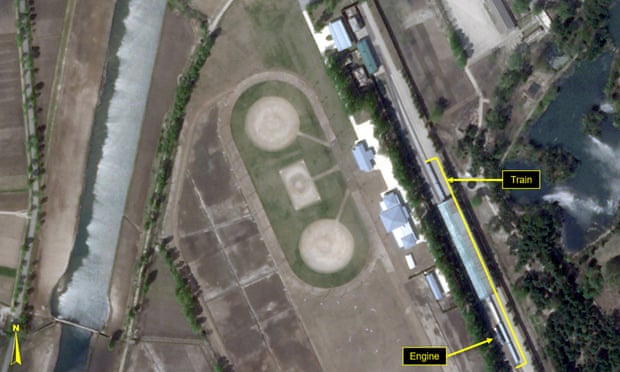 Các chuyên gia của tổ chức chuyên nghiên cứu về Triều Tiên có trụ sở tại Washington 38 North cho biết, dựa vào các ảnh chụp vệ tinh họ phát hiện đoàn tàu đậu tại nhà ga riêng tại Wonsan hôm 21/4 và 23/4.