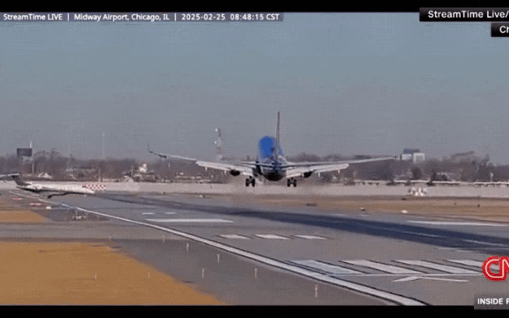 Vào khoảng 8h50 sáng ngày 25/2 (giờ địa phương), chuyến bay số hiệu 2504 của hãng Southwest Airlines đang trên đường hạ cánh xuống sân bay quốc tế Midway (Chicago) từ Omaha (Nebraska). Cùng lúc đó, một máy bay tư nhân Bombardier Challenger 350 đang chuẩn bị cất cánh để đến Knoxville (Tennessee). Theo dữ liệu từ FlightRadar24, hai máy bay đã suýt va chạm trên đường băng.