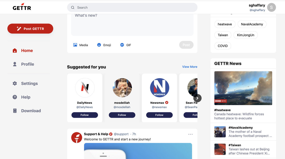 GETTR xuất hiện trên các cửa hàng ứng dụng của Google và Apple từ giữa tháng 6, và đã thu hút hơn 1.000 lượt tải xuống ở mỗi cửa hàng. Ứng dụng có giao diện giống với Twitter, song cho phép người dùng được gõ đến 777 ký tự trong một bài đăng, bên cạnh các tính năng đăng tải video dài tối đa 3 phút và cho phép lưu trữ các video dạng livestream.
