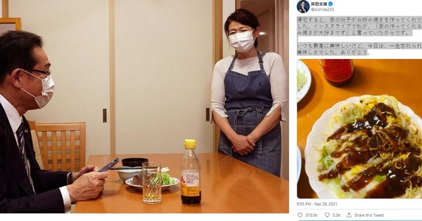Năm nay, sau khi chính thức trở thành Chủ tịch của đảng LDP thay cho ông Suga Yoshihide hết nhiệm kỳ, ông Kishida trở về nhà thưởng thức bữa cơm tối do vợ chuẩn bị. Ông chụp ảnh món okonomiyaki do vợ làm, khoe lên mạng xã hội lúc gần nửa đêm và nhận được sự quan tâm của nhiều người.