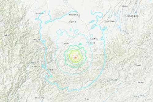 Động đất xảy ra ở ngoại ô thành phố Nghi Tân, tây nam tỉnh Tứ Xuyên, Trung Quốc lúc 22h55 ngày 17/6 (21h55 giờ Hà Nội) ở độ sâu 16 km. Trung tâm Mạng lưới Động đất Trung Quốc (CENC) cho biết động đất mạnh 6 độ, trong khi Cơ quan Khảo sát Địa chất Mỹ (USGS) thông báo cường độ là 5,8.