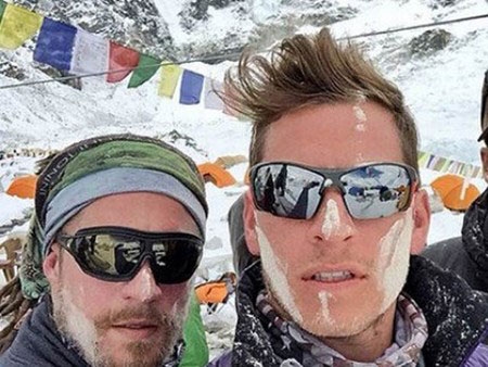 Dan Fredinburg (phải) trong chuyến leo núi chinh phục đỉnh Everest |