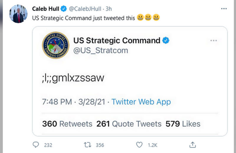 Dòng Twitter bao gồm 13 ký tự vào tối 28/3 nhận được hàng nghìn lượt chia sẻ và STRATCOM đã xóa sau khoảng nửa giờ.