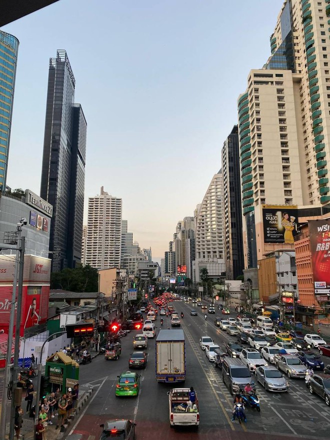 Kể về tình hình ở khu vực gần khách sạn, cô bạn cho biết: "Khi đó mình chỉ cách có 1 con đường, qua kia đường là khách sạn rồi mà lúc đó mình không thấy cấm đường hay thông báo gì đâu. Tầm 18:30 mình bên Central World thấy mọi người vẫn đi mua sắm bình thường, không thấy cảnh báo gì. Lúc tầm 19:30 chợ đêm Pratunam mở bình thường".