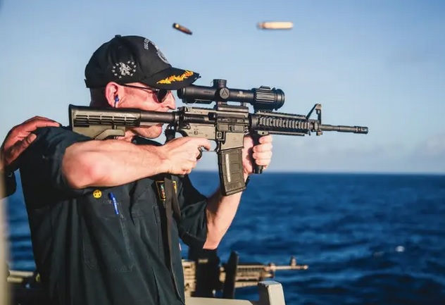 Tờ Business Insider (Mỹ) đưa tin Hải quân nước này đã đăng lên mạng xã hội Instagram hình ảnh hạm trưởng tàu khu trục USS John S McCain – ông Cameron Yaste - đang ôm khẩu súng vẫn còn gắn nắp ống ngắm. Kèm theo bức ảnh là chú thích: “Từ tập luyện bắn súng, bảo dưỡng, kiểm tra độ tinh khiết của nhiên liệu cùng các chi tiết trên biển và mỏ neo, Hải quân Mỹ luôn sẵn sàng phục vụ và bảo vệ".
