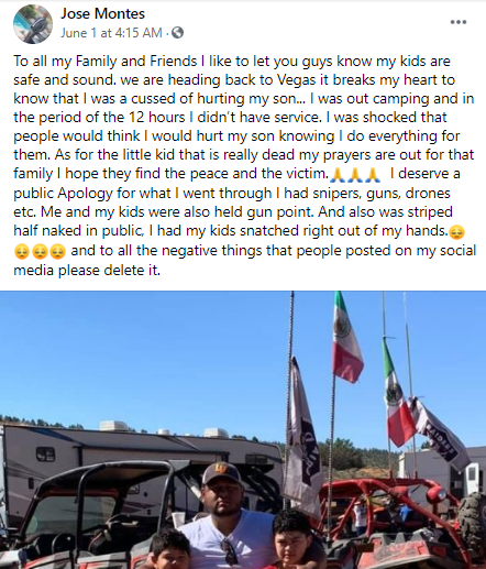 Theo lời của người phụ nữ này, chồng của chị là Jose Montes-Herrera, 37 tuổi, đã đưa 2 con trai bao gồm Daniel và em trai 11 tuổi Eden của cậu đi cắm trại nhưng gần đây gia đình đã mất liên lạc với họ. Kết hợp tất cả những thông tin trên, cảnh sát đưa Jose vào diện tình nghi. Cảnh sát lập tức tổ chức một cuộc truy lùng nghi phạm, đồng thời mở họp báo để kêu gọi sự giúp đỡ của cộng đồng trong việc tìm kiếm Jose và con trai nhỏ của người đàn ông này.