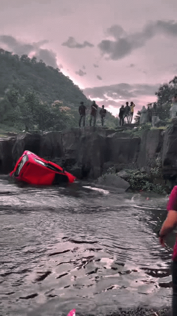 Tuy nhiên, có một điều mà người cha này đã không ngờ đến, đó là khi lái xe đến đây, do đậu quá sát mép thác nước và không dùng phanh tay nên chiếc xe đã bị trượt dần ra khỏi vách đá.