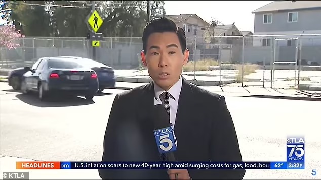 Phóng viên Gene Kang của KTLA đang tường thuật trực tiếp từ giao lộ ở khu đông dân cư phía Nam Los Angeles về trường hợp một người đàn ông 42 tuổi đã bị đâm và thiệt mạng trong một vụ tai nạn vào cuối tháng trước.