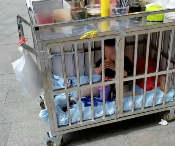 Trong một đoạn video dài 12 giây lan truyền trên mạng, cậu bé sống ở thành phố Đồng Nhân, phía nam tỉnh Quý Châu, được nhìn thấy đang vươn tay qua song sắt về phía máy ảnh khi cậu di chuyển xung quanh lồng sắt. Bảng hiệu trong video cho thấy người mẹ bán món tráng miệng bằng thạch đá để kiếm sống.