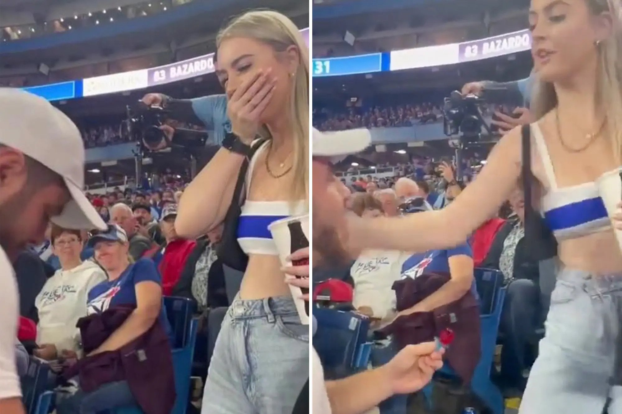 Nhiều khán giả trên sân bóng chày Rogers Centre ở Toronto (Canada) tỏ ra hào hứng với màn cầu hôn, rất nhiều người lấy điện thoại ra ghi hình. Ngay cả nhóm kỹ thuật viên trên sân cũng chú ý tới hành động của chàng trai, vội đưa máy quay tới để chiếu trực tiếp khung cảnh lên các màn hình lớn.