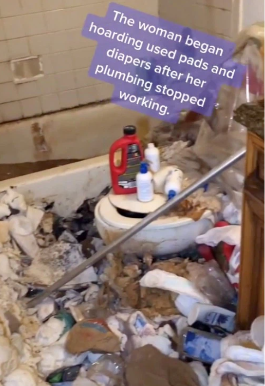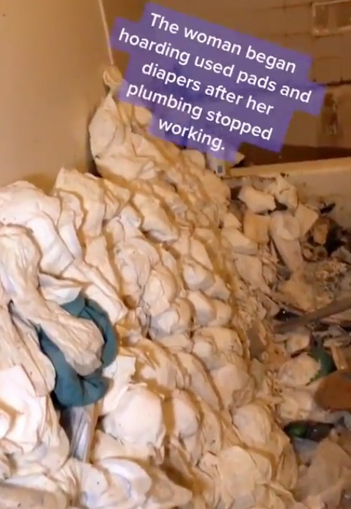 Những người dọn dẹp cho biết: "Người phụ nữ bắt đầu tích trữ băng vệ sinh và tã đã qua sử dụng sau khi hệ thống ống nước của cô ấy bị hỏng. Cô ấy muốn có một khởi đầu mới và quyết định chuyển khỏi tiểu bang. Cô ấy gọi cho chúng tôi để dọn dẹp đống lộn xộn trong căn hộ của cô ấy trước khi cô ấy rời đi. Chúng tôi đã phải loại bỏ tất cả các miếng lót và tã bằng một cái xẻng khổng lồ".