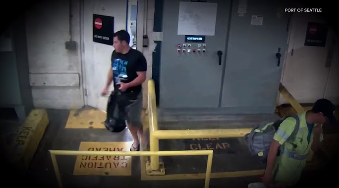 Hình ảnh trong đoạn video nhìn thấy rõ Richard Russell đi qua bộ phận an ninh sân bay. Anh ta khi đó mặc chiếc áo phông đen có in dòng chữ 'The Sky's No Limit' (Tạm dịch: Bầu trời bao la) ở sau lưng. Richard Russell lấy ba lô của mình và tiếp tục.