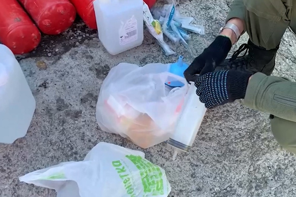 Trong những bức ảnh do RT công bố sau đó, các nhân viên FSB trong quá trình khám xét nhà kho của mật vụ Ukraine trên đã phát hiện nhiều bình đựng hóa chất và một số linh kiện điện tử cất giấu tại đây.