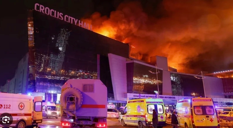 Vụ tấn công xảy ra ngay trước show diễn của ban nhạc Piknik trước khoảng 6.200 khán giả. Sau khi xả súng, nhóm khủng bố đã phóng hỏa đốt nhà hát. Khoảng hơn 200 người được cho là vẫn còn trong tòa nhà trước khi mái nhà sụp xuống do hỏa hoạn.