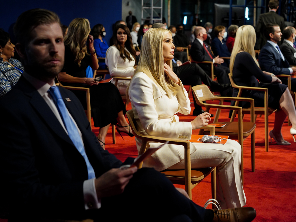 Một số thành viên trong gia đình tổng thống, bao gồm các quan chức Nhà Trắng và quan chức chiến dịch tranh cử của ông Trump, được nhìn thấy không đeo khẩu trang tại Cleveland trước buổi tranh luận. Một số người có đeo khẩu trang vào khán phòng nhưng tháo ra ngay khi ngồi xuống, ABC News.