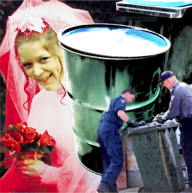 Hóa ra sau khi giết vợ, Frederick đã nhét xác Edwina vào một chiếc thùng phuy đựng dầu màu xanh rồi đổ cả xi măng vào để tránh gây bốc mùi. Rùng rợn hơn nữa là hắn không đem chiếc thùng này đi chỗ khác mà giữ trong nhà, thậm chí chiếc thùng còn thỉnh thoảng xuất hiện trong những bức ảnh của gia đình, các bữa ăn tụ tập đông đủ thành viên. Hai cô con gái Careesa và Sharon ở trong căn phòng cách đó chỉ vài mét.