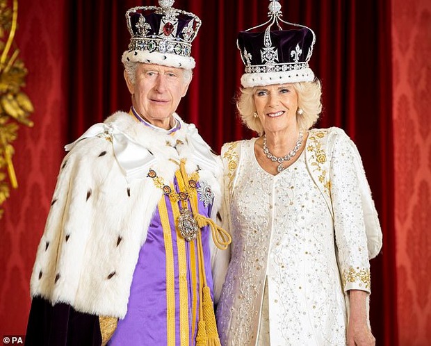 Cùng ngày, Vua Charles và Vương hậu Camilla cũng công bố ảnh thiệp Giáng sinh năm nay. Đó là bức ảnh chụp trong Lễ đăng quang tại Cung điện Buckingham hồi tháng 5.