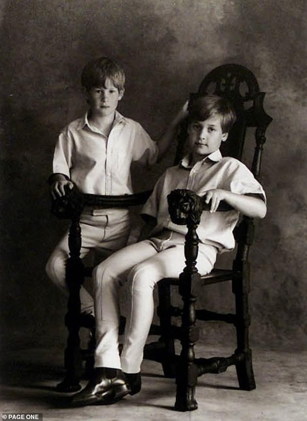 Tấm thiệp Giáng sinh năm 1992 do Vua Charles và Diana phát hành cho thấy William và Harry rất thoải mái tạo dáng trước phông nền có họa tiết nhẹ nhàng trong áo sơ mi trắng và quần tây.