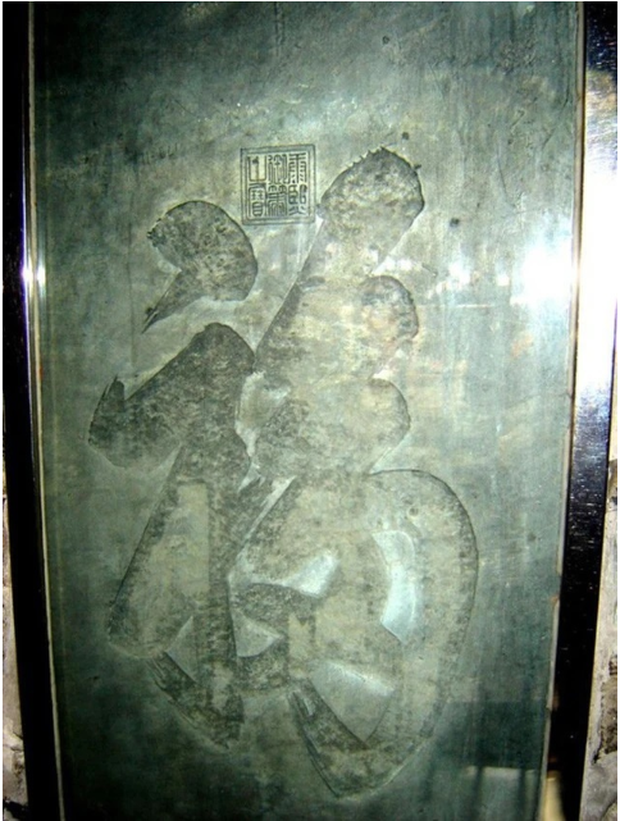Khi phá dỡ hai hòn giả sơn trong vườn của phủ Hòa Thân, người ta phát hiện bên dưới có một tấm bia đá khắc chữ Phúc do hoàng đế Khang Hi ngự bút. Vị hoàng đế này tuy là bậc thầy thư pháp nhưng rất ít khi ông rất hiếm khi đề chữ. Tấm bia chữ Phúc này là do Khang Hi viết để cầu an cho Hiếu Trang hoàng thái hậu khi bà mắc bệnh nặng.