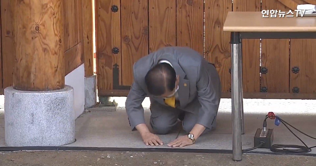 "Tôi muốn thay mặt tín đồ gửi lời tạ lỗi chân thành với nhân dân," ông Lee Man-hee nói, giọng nghẹn lại. Giáo chủ 88 tuổi của Tân Thiên Địa hai lần quỳ gối trước các phóng viên trong buổi họp báo, đầu cúi thấp.