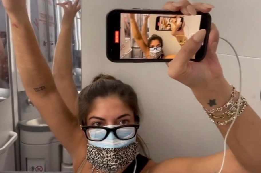 Người phụ nữ sau đó quyết định tự cách ly trong phòng vệ sinh cho tới khi máy bay hạ cánh, ước tính khoảng năm giờ đồng hồ. Cô tự quay video bản thân thực hiện quá trình cách ly trong không gian chật hẹp của phòng vệ sinh như thế nào, thu hút tới 4 triệu lượt xem trên TikTok.