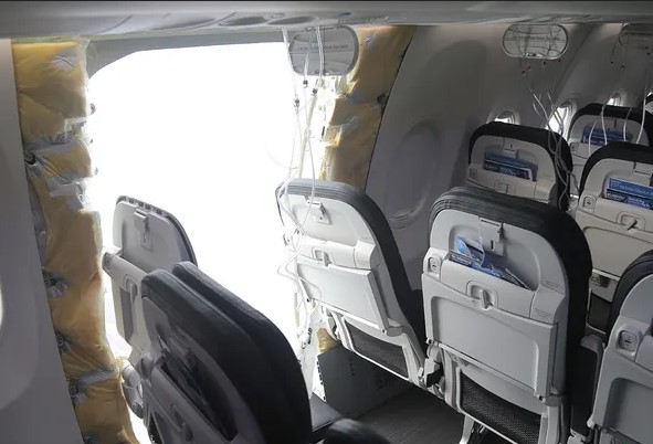 Tấm bịt cửa máy bay Boeing 737-9 MAX bị bung chỉ vài phút sau khi chuyến bay 1282 của hãng hàng không Alaska cất cánh từ thành phố Portland, bang Oregon (Mỹ) hôm 05/01. Sự cố xảy ra ở độ cao gần 4.900 mét, khiến áp suất trong khoang máy bay giảm mạnh. Lỗ hổng xuất hiện đã hút một số điện thoại di động của hành khách.