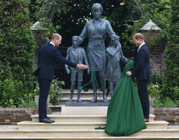 Khi hai anh em đứng trước bức tượng Công nương Diana, một nhân viên của ban tổ chức đã hướng dẫn họ cách vén màn bức tượng.
