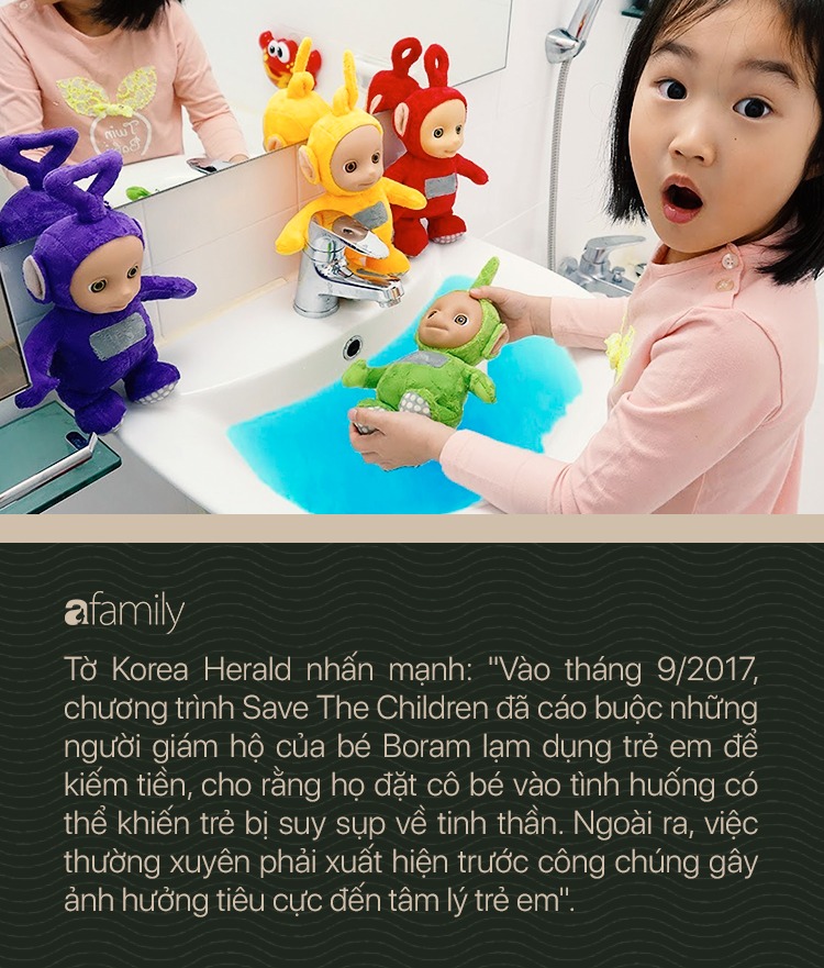 Trang tin Korea Herald nhấn mạnh: "Vào tháng 9/2017, chương trình Save The Children đã cáo buộc những người giám hộ của bé Boram, cho rằng họ đã kiếm tiền bằng cách đặt những đứa trẻ vào tình huống có thể khiến chúng bị suy sụp về tinh thần. Ngoài ra, việc thường xuyên phải xuất hiện trước công chúng gây ảnh hưởng tiêu cực đến tâm lý trẻ em."