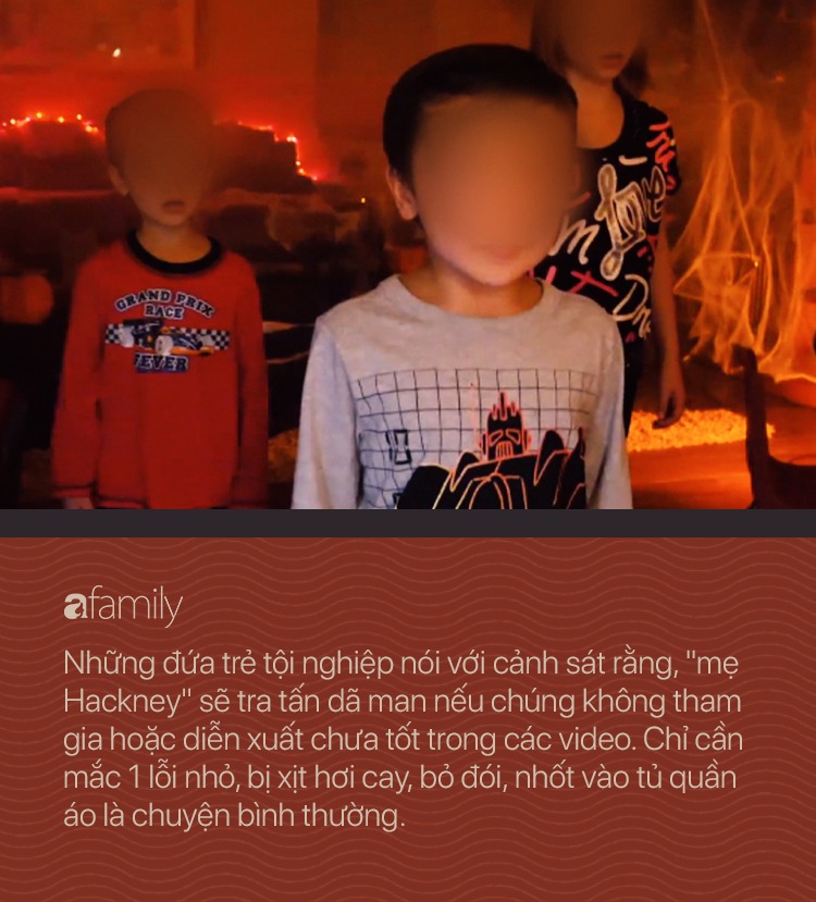Những đứa trẻ tội nghiệp nói với cảnh sát rằng, "mẹ Hackney" sẽ tra tấn dã man nếu chúng không tham gia hoặc diễn xuất chưa tốt trong các video. Chỉ cần mắc 1 lỗi nhỏ, bị xịt hơi cay hoặc bỏ đói là chuyện bình thường.