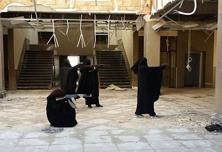 | 4 nữ sát thủ IS đang tập bắn. Ảnh: Twitter |