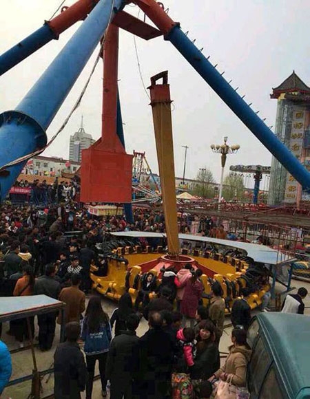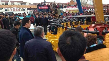 Chiếc đu quay trong một công viên Trung Quốc đang hoạt động bình thường bỗng gặp sự cố và rơi xuống đất làm 19 người bị thương phải nhập viện.