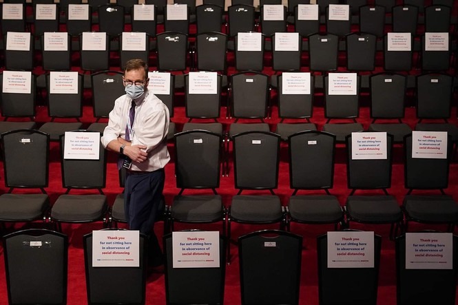 Các khán giả phải đeo khẩu trang, nhưng ông Trump, Biden và người điều phối Welker thì không bắt buộc.