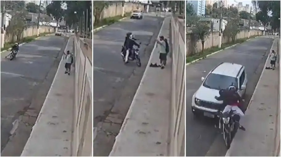 Hóa ra trước đó, một tài xế điều khiến chiếc SUV được cho là nạn nhân trước đó của hai tên cướp khi thấy cặp đôi này áp sát các nạn nhân tiếp theo thì cũng bắt đầu nhấn ga tăng tốc và tông thẳng vào chiếc xe máy khiến những tên cướp ngã văng xa cả chục mét.