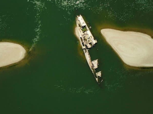 Giới chức cho biết những con tàu dưới lòng sông giờ đã nhô ra phần tháp pháo, cầu chỉ huy, cột buồm bị gãy và vỏ bị vẹo.