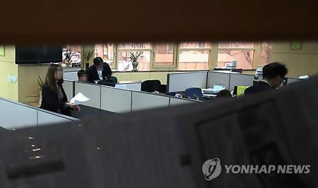 | Các công tố viên kiểm tra văn phòng của Kosteel Co.,một đối tác của tập đoàn POSCO, hôm 7-4. Ảnh: Yonhap |